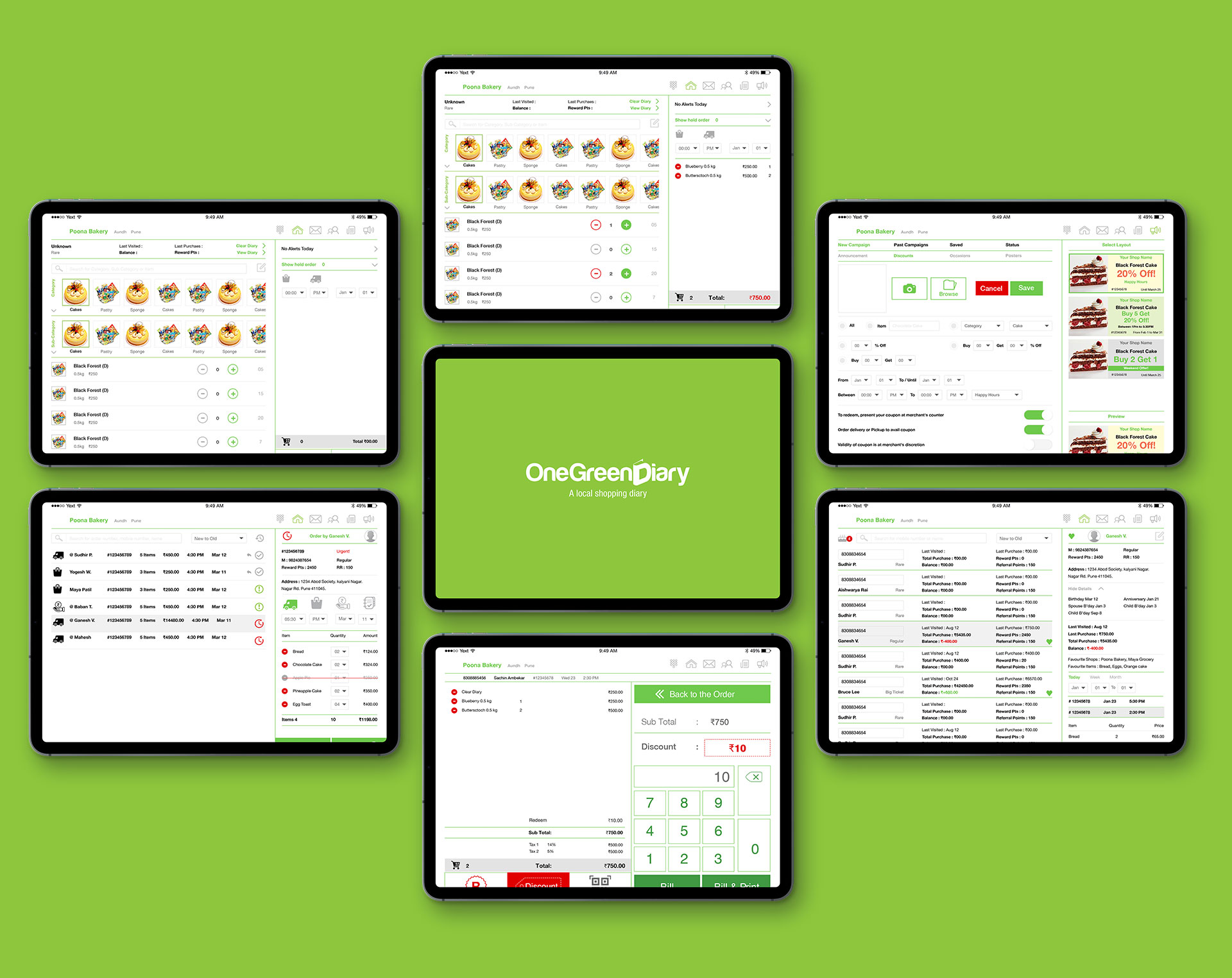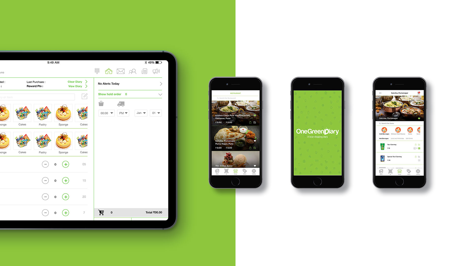 One Green Diary was an app created to order food online with convenience and ease. One could order food, shop for groceries or even delicacies like cakes etc. The website was customer-friendly with precise date of hotels, grocery stores and more with reward points for the respective customers.