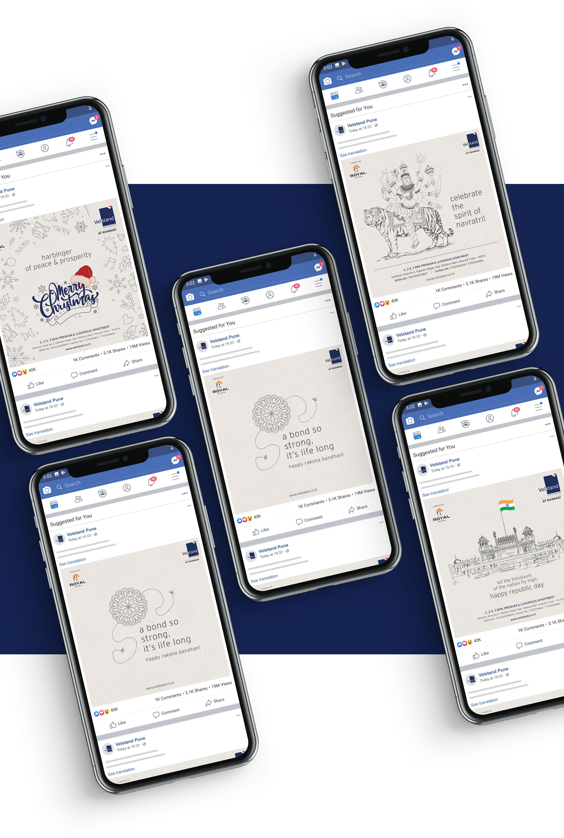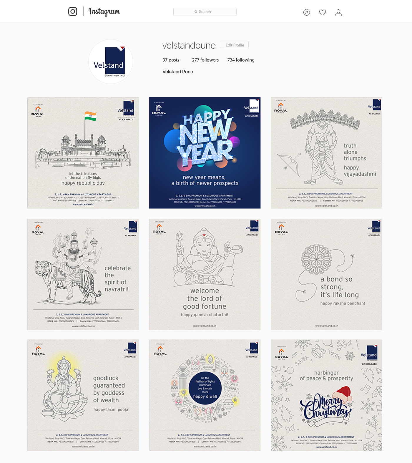 An exclusive residential project, Velstand is located in one of the classy areas of Pune. It exudes a distinct identity with its unique design and class. So it was natural for the digital promotion to be matching up to its standard. Our team devised minimalistic design approach with graphic-based posts.